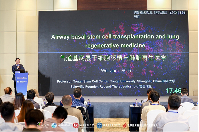 同济大学医学院左为教授受邀担任本次大会联席主席,并在“细胞与基因治疗的国际前沿”分会场作大会邀请报告,题为《气道基底层干细胞移植与肺脏再生医学》。左为教授系统介绍了其团队在气道基底层干细胞(Airway Basal Stem Cells, BCs)移植与肺组织再生方面的最新研究和转化进展。报告重点包括:
